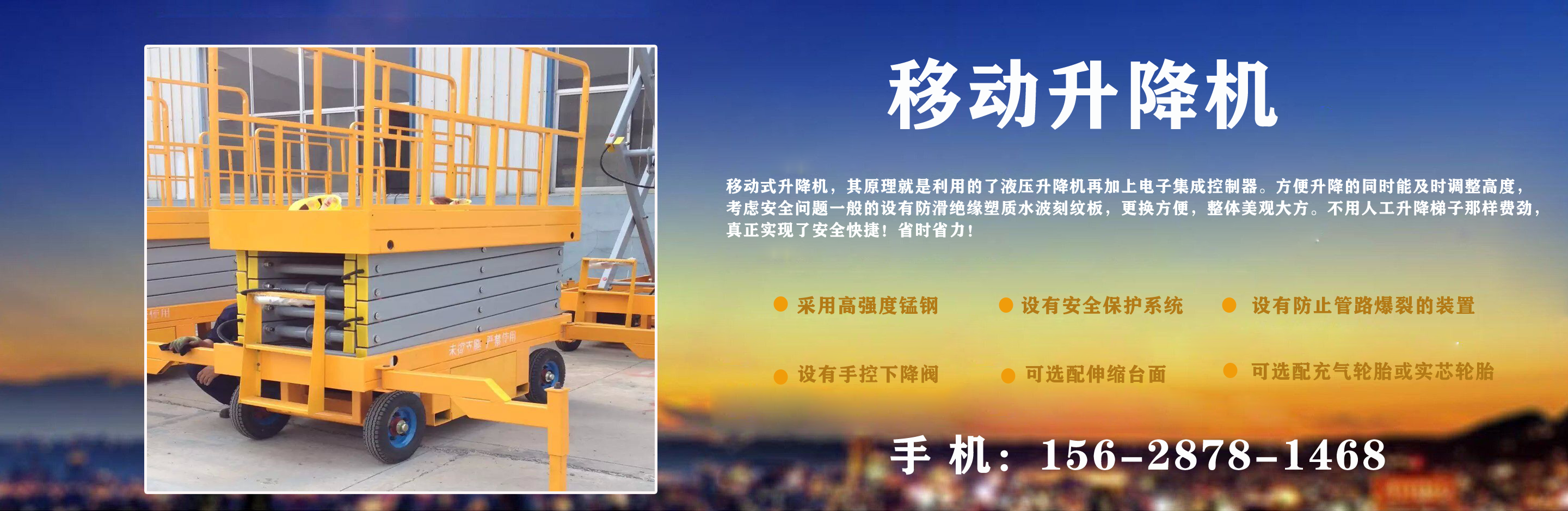 濟(jì)南中升機(jī)械制造有限公司主營(yíng)移動(dòng)升降機(jī),小型移動(dòng)升降機(jī),移動(dòng)式升降機(jī),移動(dòng)剪叉升降機(jī),移動(dòng)剪叉式升降機(jī)等產(chǎn)品,信譽(yù)良好,歡迎前來咨詢訂購(gòu)! 在銷售上,尊重每一個(gè)客戶,做到保質(zhì)、保量及時(shí)供貨;在售后服務(wù)上,以較短的時(shí)間,用較快的速度解決,終身追蹤服務(wù)。 公司始終以“品質(zhì)為本,服務(wù)至上”為公司宗旨。致力于提供高品質(zhì)的產(chǎn)品,完善的服務(wù),快捷的供貨,無論您身處何方,都能感受到我們的優(yōu)良服務(wù)。客戶至上,誠(chéng)信為本。 歡迎各界朋友來電,來函垂詢,選購(gòu)!...